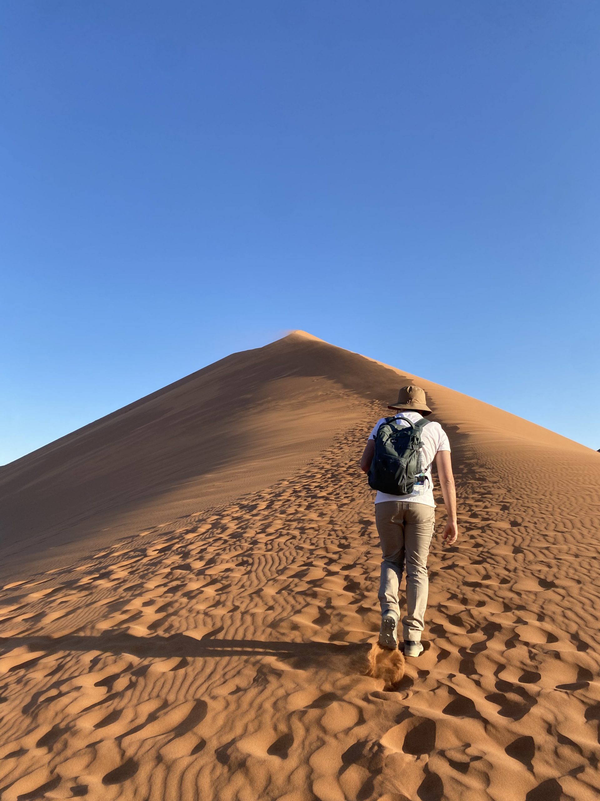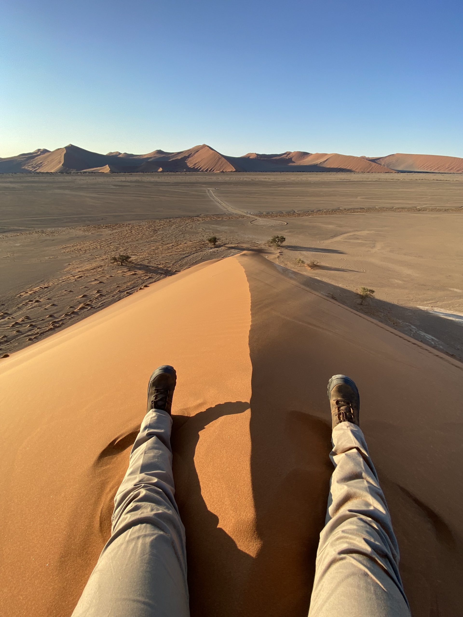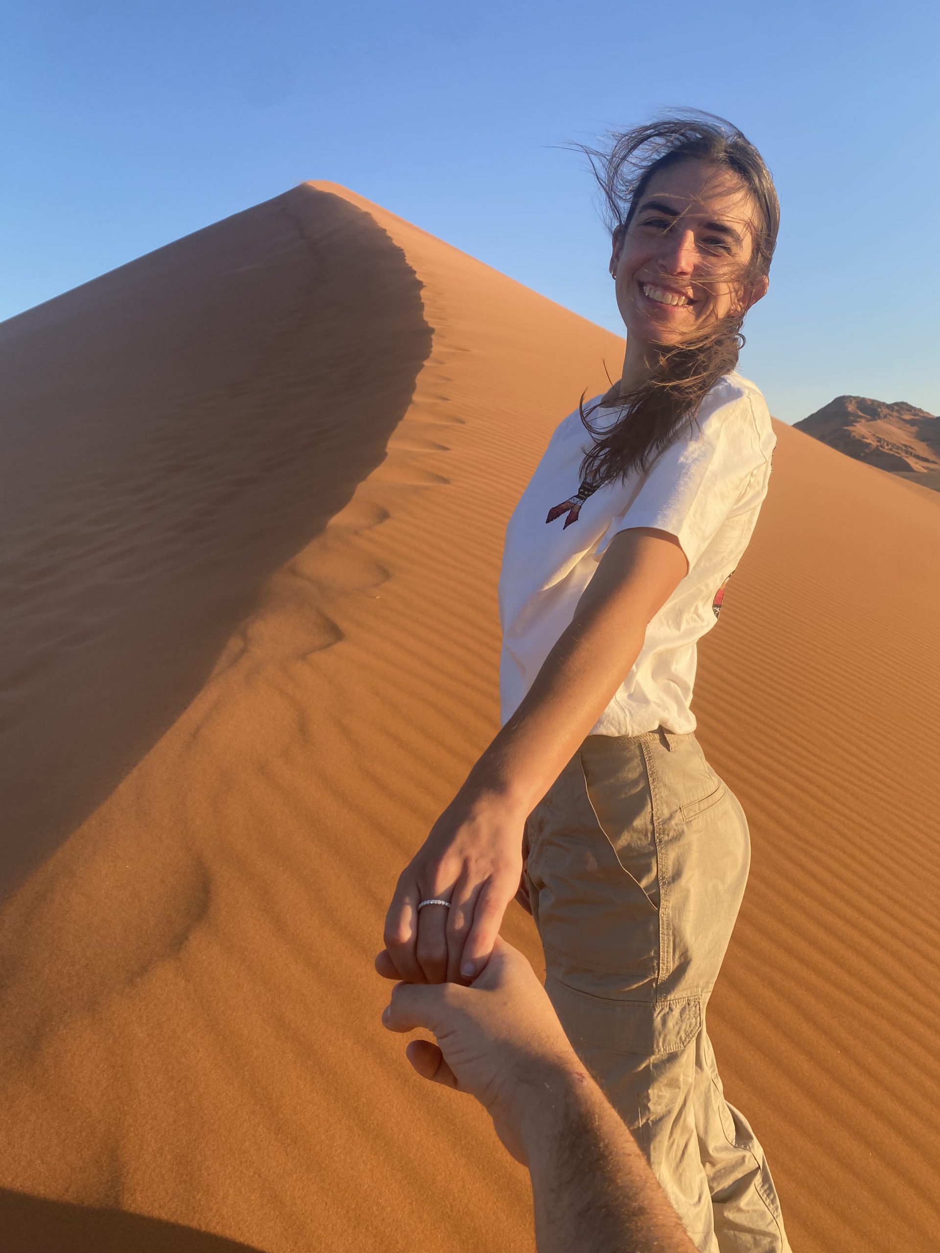 Després del gran dinar vam decidir fer un parell de visites i va ser aleshores quan l’Eloi va decidir que aquell era el moment ideal per fer la gran pregunta. Estàvem sols enmig d’un desert gegant, al capvespre, un paisatge increïble i vent, molt de vent que feia volar la sorra vermellosa del desert del Namib.