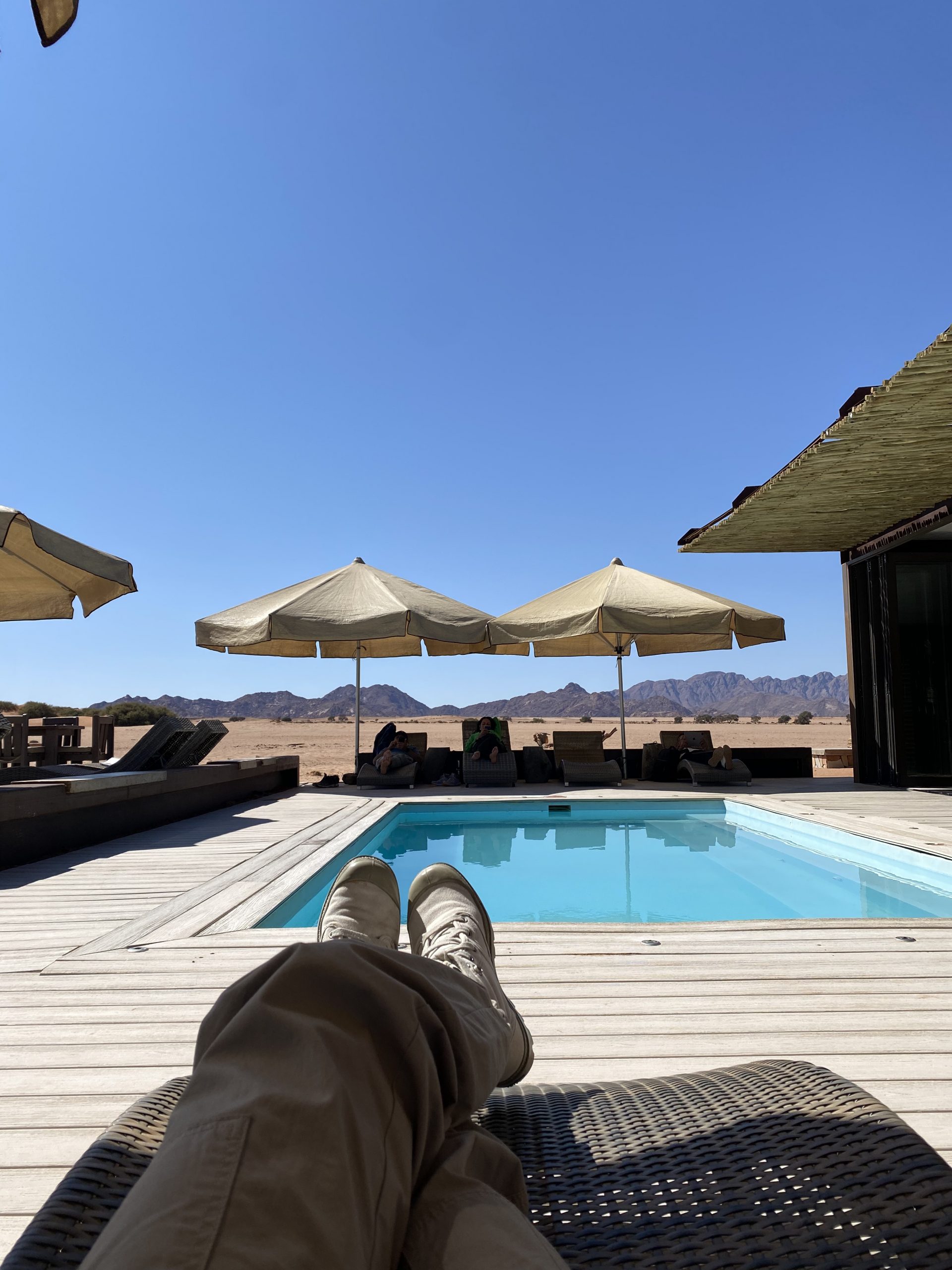 Les carreteres de Namíbia són divertides, no hi ha carrils, no hi ha asfalt, només pedres i pedretes. La sensació d’immensitat no s’acaba mai. I, en mig d’aquests paisatges infinits, et plantes en un hotel espectacular i per dinar et fan pollastre arrebossat amb patates. Es podia ser més feliç? Pensava la Laura, sense saber que sí, aquell dia la felicitat màxima encara havia d’arribar.
